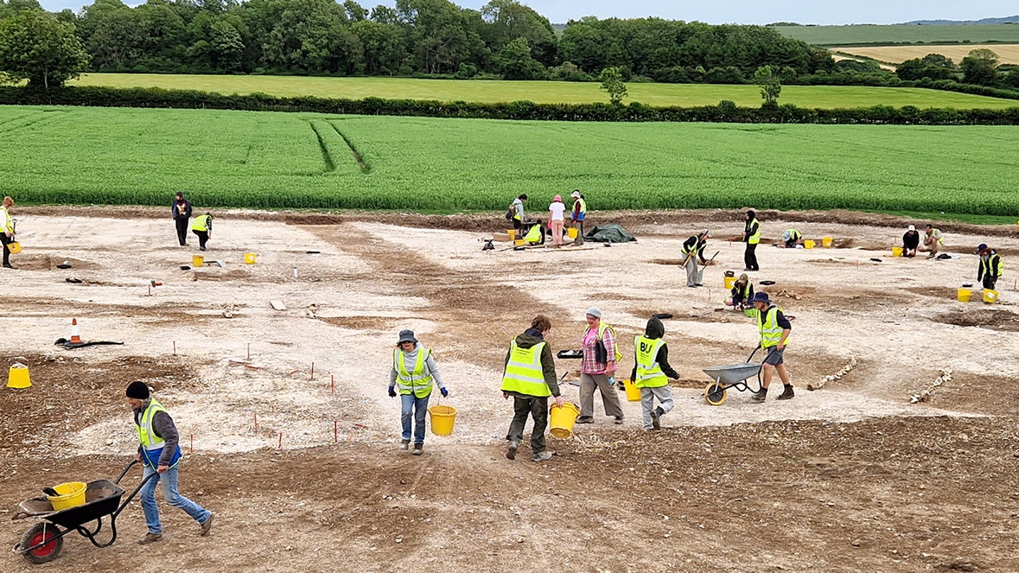 Archaeologists in Dorset unearthed a 2,000-year-old Iron Age burial web site whereas filming a Channel 4 documentary with Sandi Toksvig. (Bournemouth College)