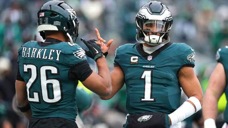MVP candidate Saquon Barkley bought the occasion began with a 60-yard run on the Eagles’ first offensive play of the sport and completed with three touchdowns. He and Hurts turned the primary pair of teammates to have at the very least three speeding touchdowns every in a playoff recreation in NFL historical past.