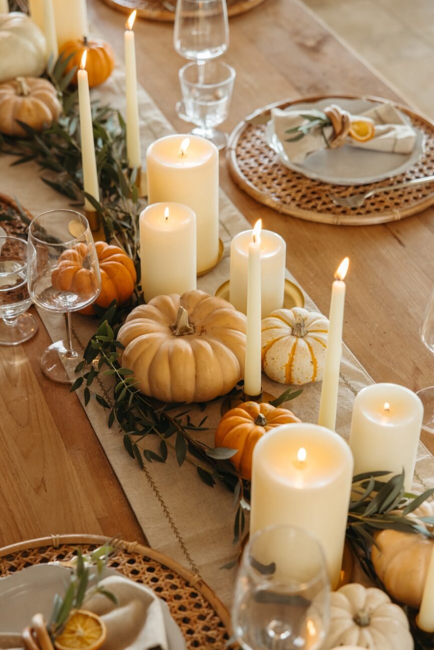 Safe a folded serviette with a holder on the middle of every setting. From there, tuck in a small element that feels private: a handwritten identify or a sprig of greenery. Cluster candles of various heights alongside the middle (as a result of nobody likes speaking over a towering centerpiece).