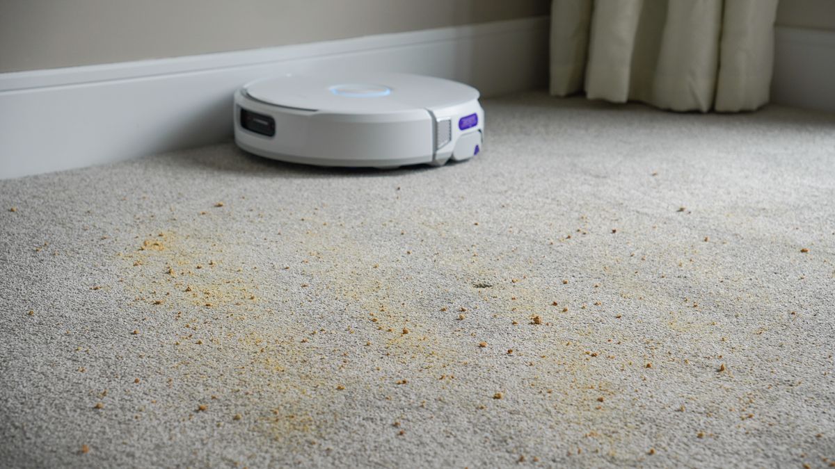 The robotic drove in a extra meticulous method, however left fairly a number of patches of crumb in its wake, plus some trails of particles unfold round by its tank tracks. Actually, I used to be anticipating slightly higher right here. As is nearly all the time the case with robovacs, the most effective method is to have it vacuum your complete room twice, slightly than deal with a single space from which it’s more likely to flick filth. This method produced the most effective outcomes.