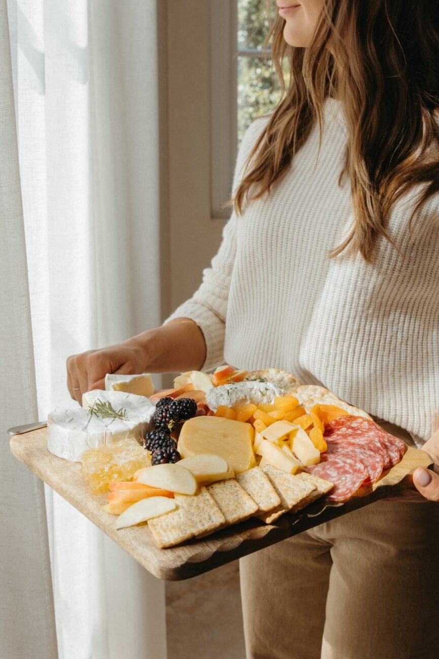 A grazing board piled with cheeses, meats, fruits, and nuts doubles as each dinner and décor—certainly one of my favourite straightforward internet hosting hacks. I prefer to anchor the unfold with three or 4 cheeses in several textures: a agency, nutty gouda or cheddar, one thing creamy like brie, and a smooth choice resembling goat or blue. From there, I’ll fill in with seasonal fruit, nuts, and crackers till the platter feels plentiful and alluring.
